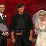 ore 20.59: Don Matteo (alias Terence Hill) arriva in scena con la sua inseparabile bicicletta. “Ho fatto un lungo viaggio, devo sposare due ragazzi” dice. Ed arrivano Fabio e Luciana vestiti per le nozze. Terence Hill, che convince Fazio a pronunciare il sì estraendo un cinturone da pistolero, li unisce “finché Sanremo non li separi”. E non ci lasceremo maaai… cantano i due conduttori.