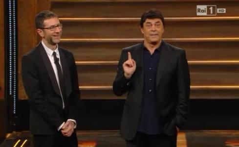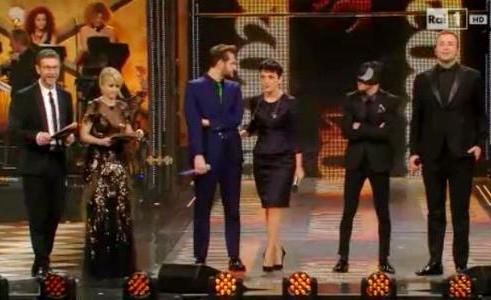 ore 00.09: Luciana Littizzetto indossa un nuovo vestito con vedo non vedo sulla scollatura. Intanto arriva la busta con i primi tre finalisti (annunciati nell’ordine di esecuzione estratto da un notaio fuori onda).
