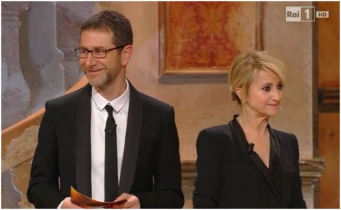 21.13: Fazio accoglie Luciana Littizzetto – ancora sotto l’effetto Carrà – e, insieme, danno il via alla gara. Il primo ad esibirsi è Renzo Rubino con “Ora”, che ammette di affaticarsi quando esegue questo pezzo. Littizzetto urla: “Sei giovane, allora!”.