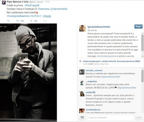 Primo giorno sanremese!!! Tante emozioni!! E a prescindere da quello che sarà il risultato finale, ci tenevo a dire un grazie particolare alle nostre fan o anche alle persone che ci stanno sostenendo particolarmente in questo periodo!! Io dico sempre che il pubblico è davvero la nostra forza!! E se oggi siamo dove siamo è grazie al nostro grande manager @micheletorpedine e anche a voi che sostenete noi e la nostra musica!! GRAZIE#ILVOLOVERS #ilvolograndeamore #sanremo2015
