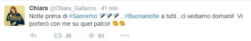 Chiara Galiazzo su Twitter dà la buonanotte ai fan