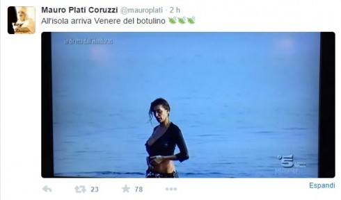 Più rilassato il suo partner, Mauro Coruzzi, a guardare L’isola dei famosi e a commentare la nuova naufraga Cristina Buccino.