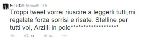 “Troppi tweet vorrei riuscire a leggerli tutti,mi regalate forza sorrisi e risate. Stelline per tutti voi, Arzilli in pole*******************”