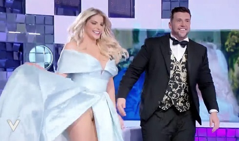 Al momento dei saluti finali, la neo sposina ha infatti sollevato leggermente il vestito che indossava e, grazie al vertiginoso spacco, ha dato modo ai telespettatori di intravedere la sua zona bikini in maniera integrale. Pare proprio non portasse le mutandine. Il particolare non è passato inosservato nemmeno a Striscia La Notizia, pronta a ironizzare sull’incidente.