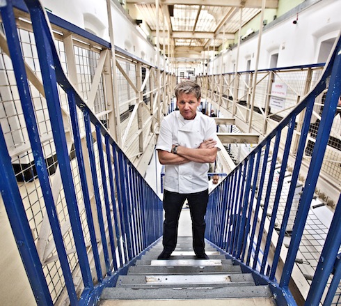 Da questa sera – 22 ottobre 2013 – e per i martedì a seguire, Real Time manderà in onda alle 23:05 il nuovo programma dello chef scozzese che non riesce a star fermo un attimo. Il Gordon più famoso della tv sarà protagonista di Ramsay: Chef dietro le sbarre (Gordon Behind Bars), una sfida che lo vedrà “ospite” del carcere di Brixton, nel sud di Londra, pronto ad insegnare a cucinare ai detenuti, molti dei quali non sanno neanche sbattere le uova.