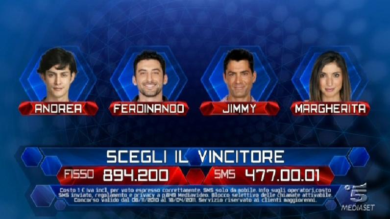 GRANDE FRATELLO 11: IN FINALE ANDREA, FERDINANDO, MARGHERITA E JIMMY. CHI VUOI CHE VINCA?