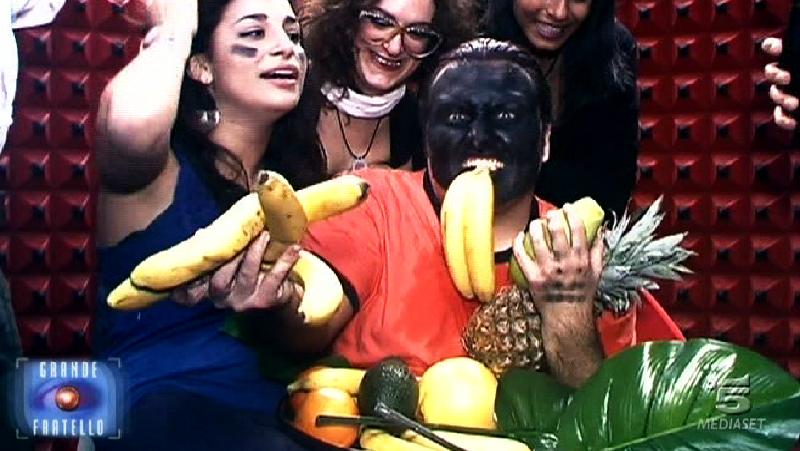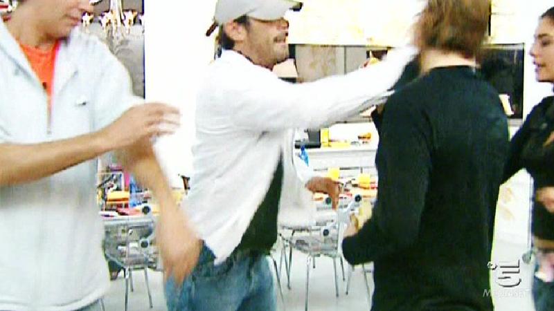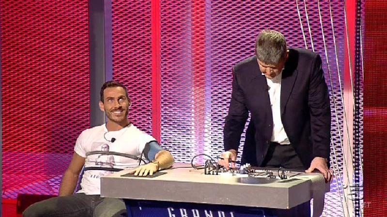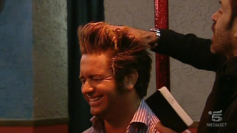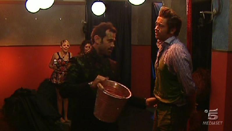 Ore 22.28: Patrick, legato a un palo di lap-dance, assiste all’ingresso di Ascanio ma la gag non riesce perchè le bombolette di panna spray in dotazione alle fanciulle non riescono a sporcare il concorrente. Con la scusa di aver qualche conto in sospeso da ben otto anni il Pacelli sporca Patrick con uova e vernice.