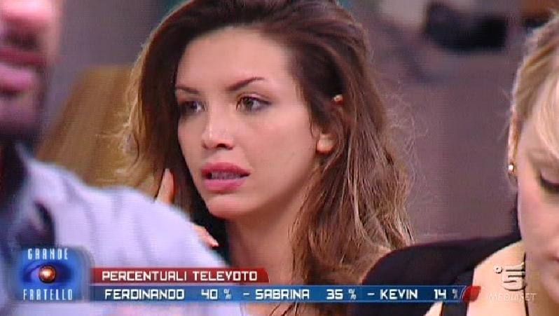 Ore 21.42: Sabrina annuncia di non aver ancora abbandonato la casa per rispetto nei confronti dei televotanti e di essere pronta ad uscire dal reality anche nel caso in cui il verdetto del pubblico dovesse esserle favorevole. Pubblicità.