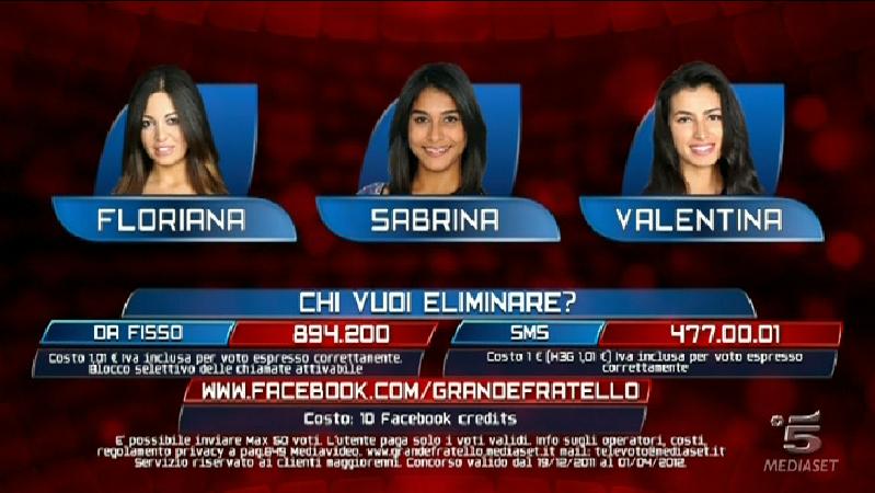 Ore 21.42: Sabrina annuncia di non aver ancora abbandonato la casa per rispetto nei confronti dei televotanti e di essere pronta ad uscire dal reality anche nel caso in cui il verdetto del pubblico dovesse esserle favorevole. Pubblicità.