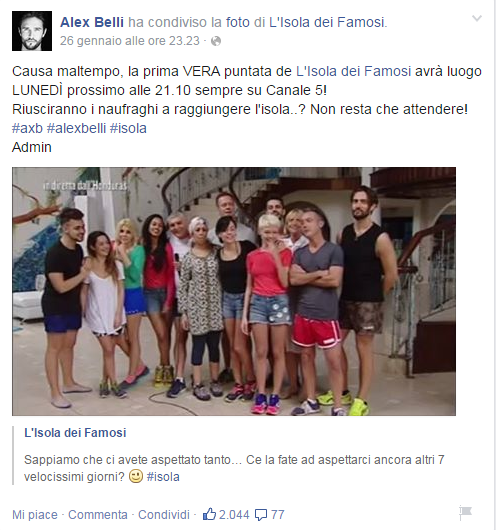 Dopo aver sbirciato sui loro profili Facebook e Twitter (spesso gestiti, in questo periodo, da terzi) è possibile farsi un’idea sulle loro reazioni rispetto a quanto è accaduto. Il personaggio che forse strappa di più un sorriso è Valerio Scanu che, in pieno mood “tale e quale”, ha postato un video – registrato prima della partenza per l’Honduras – in cui gioca a fare il verso al modo di esprimersi di Rachida Karrati. Lei stessa – o chi per lei -, probabilmente divertita dalla cosa, non ha perso tempo per ripubblicare il medesimo video sulla propria pagina Facebook con piglio autoironico. E se da una parte c’è qualcuno che quindi preferisce giocarci su iniziando a prendersi poco sul serio, dall’altra c’è invece chi non perde tempo per offrire una piccola anticipazione di quello che i telespettatori vedranno a Cayo Cocinos.