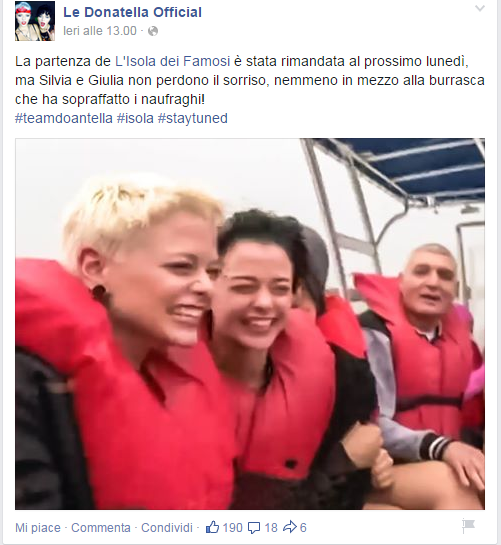 “Silvia e Giulia non perdono mai il loro sorriso e l’ #isola le aspetta lunedí prossimo! #staytuned #isolasocialclub #teamdonatella”