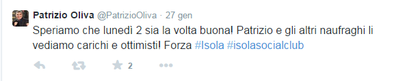 Poi c’è la categoria di quelli che hanno già iniziato a stare lontani dalla tecnologia preferendo non interagire con la terraferma ed aderendo così al concept del programma. Tra questi Melissa P., Catherine Spaak (di solito poco attiva sui propri profili) e Pierluigi Diaco.