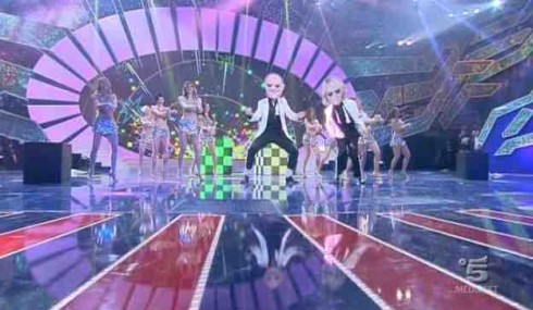 Face of Disco: da Berlusconi a Bersani, dalla De Filippi a Gerry Scotti, da Rudy Zerbi a Ezio Greggio, un’altra fantastica esibizione dei due poliedrici ballerini dalle maschere più diverse e divertenti. Sono i primi del televoto.