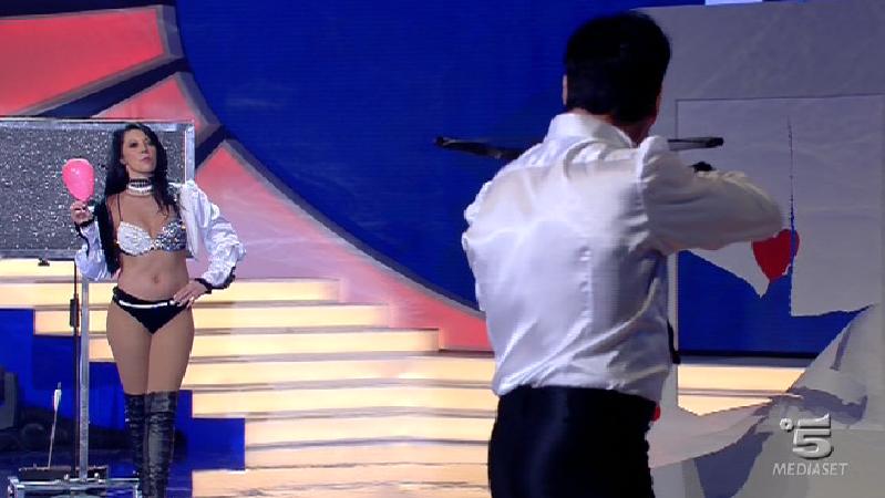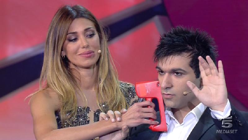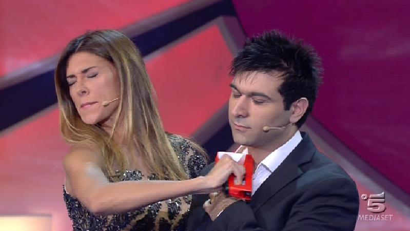 Ore 22.40: ed ecco il mentalista Simone Ravenda che si serve ancora una volta dell’aiuto di Belen Rodriguez. Questa volta ha portato quattro sparachiodi di cui tre scariche e una carica. Solo lui sa quale delle quattro è carica e deve convincere Belen con la forza del pensiero a prendere ogni volta una scarica. E il numero riesce. Il mentalista ringrazia Belen: “Ti sembra di non aver fatto niente ma hai fatto molto più di quello che pensi“. Lei: “E’ la storia della mia vita“.