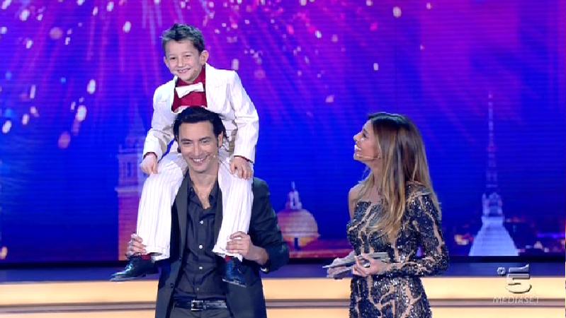 Ore 22.12: è il momento di Igor e Andrea Matyuschenko, padre e figlio, due bravissimi acrobati. Il padre tiene sospeso in aria il figlio con il solo palmo della mano.