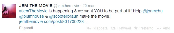 “JemTheMovie is happening & we want YOU to be part of it! Help @jonmchu @blumhouse & @scooterbraun make the movie!”