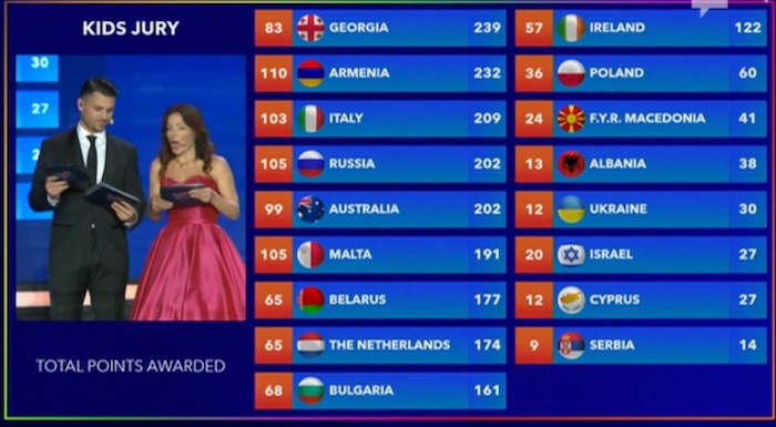 LA GEORGIA VINCE LO JUNIOR EUROVISION SONG CONTEST 2016 (VIDEO). TERZA L’ITALIA. ECCO LA CLASSIFICA FINALE