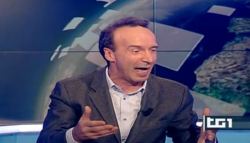 Un libro straordinario che l’artista racconterà come forse ha fatto con la celebre Divina Commedia di Dante. Poi scherza sul fatto che la conoscono tutti (la Costituzione), interpellando un “impreparato” Attilio Romita sul sesto principio fondamentale. Il conduttore del tg invita alla “non brutta figura” e il siparietto è servito: