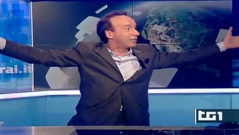 “E’ ancora prematuro parlarne” dichiarò pochi giorni fa Giancarlo Leone, direttore di Rai Intrattenimento, a proposito della serata-evento di Rai 1 con Roberto Benigni. Forse perché le prime parole ufficiali dovevano arrivare dal diretto interessato; e l’occasione si è presentata poco fa al Tg1 delle 20.00, che ha visto protagonista l’incursione del premio Oscar toscano.