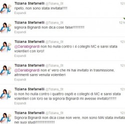 Tali dichiarazioni non sono andate giù alla Stefanelli che proprio nel corso della puntata si scatena via Twitter con una serie di cinguettii. Tra questi (il resto potete leggerli nella foto sotto):