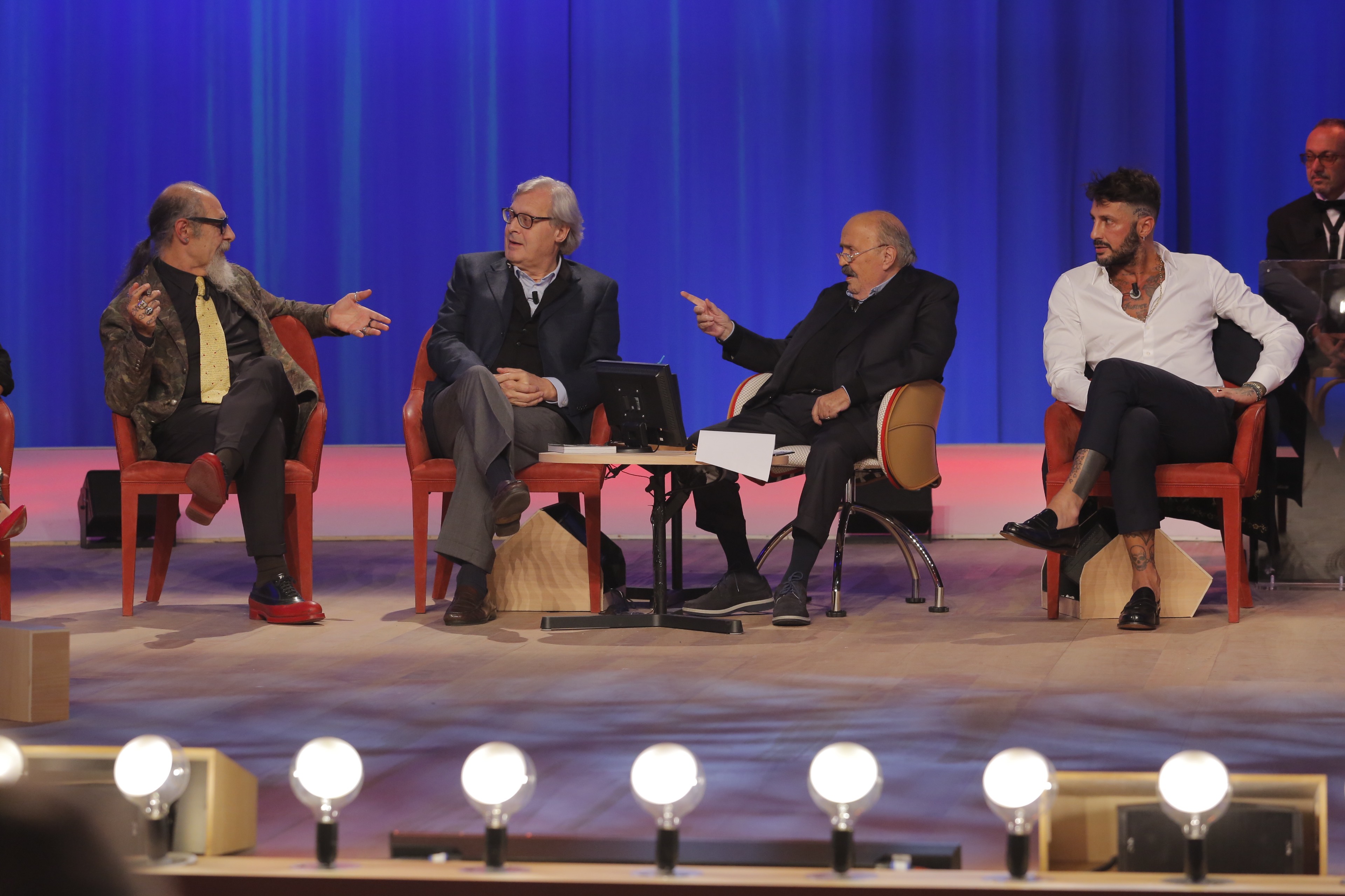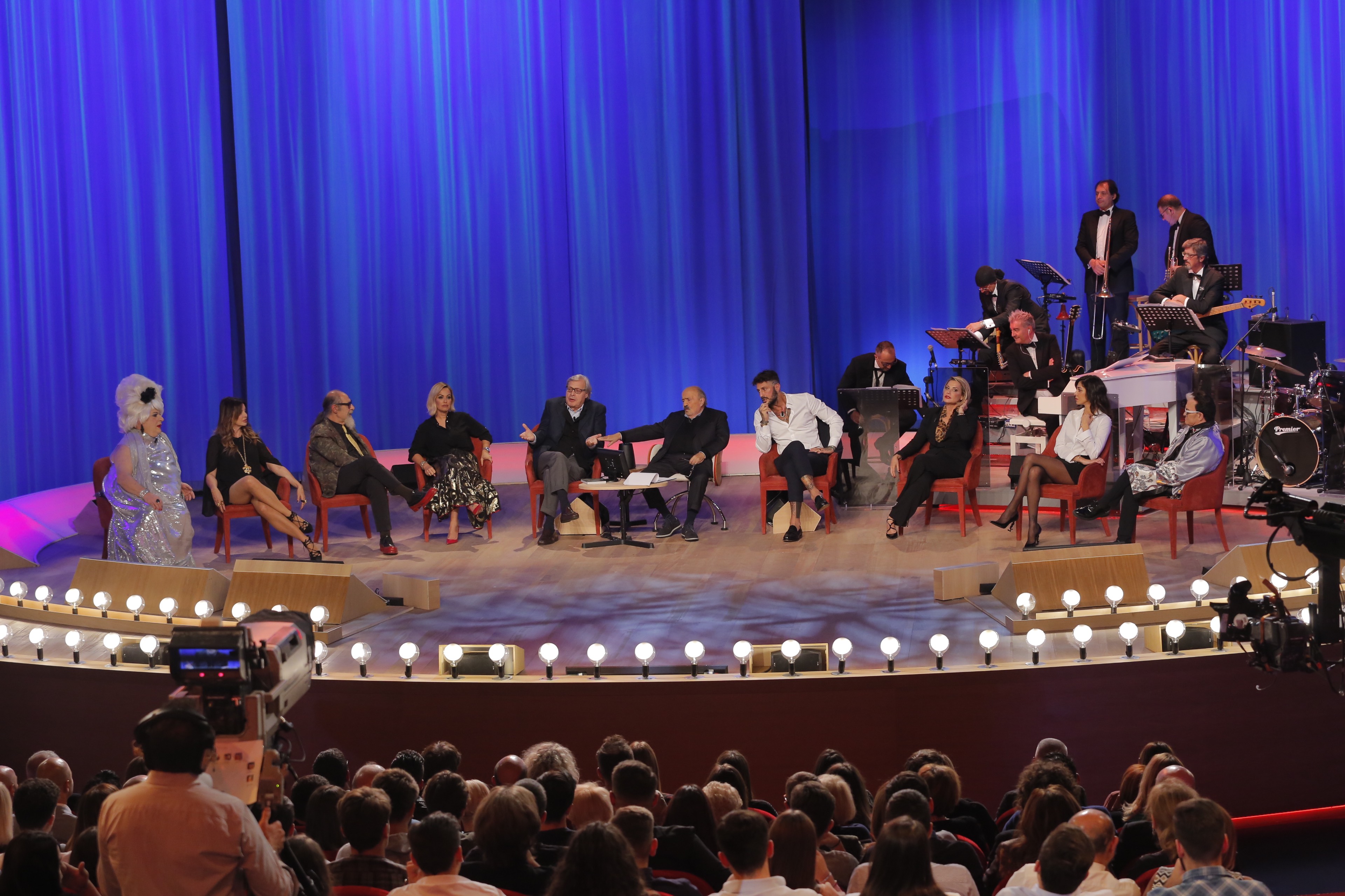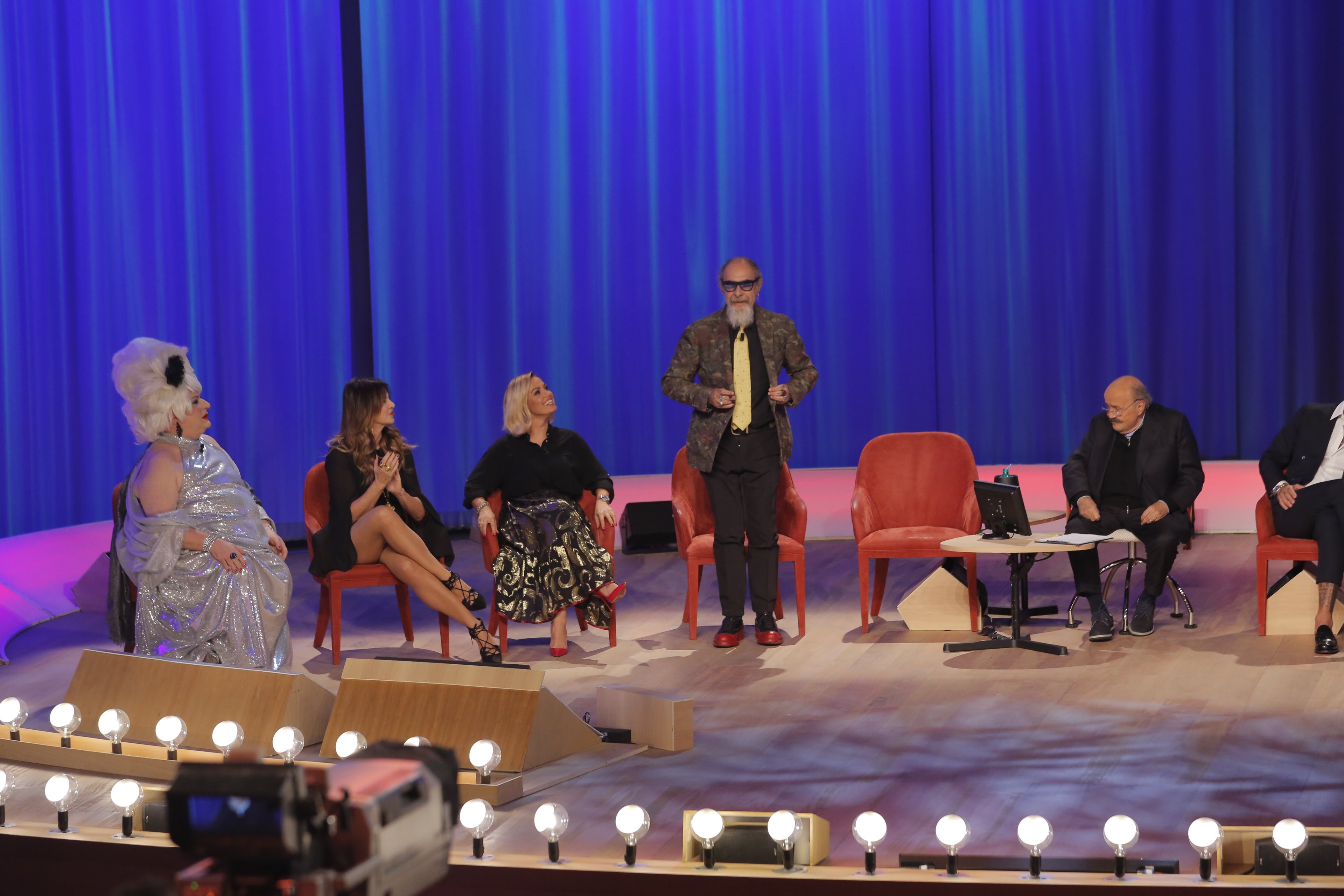 Con loro, Cristiano Malgioglio, Alba Parietti, Vittorio Sgarbi, Platinette, Sonia Bruganelli (produttrice e moglie di Paolo Bonolis) e il giornalista Roberto D’Agostino.