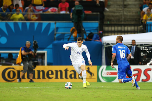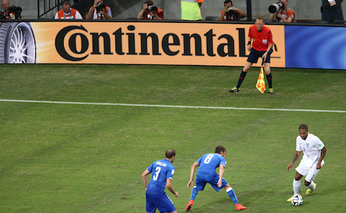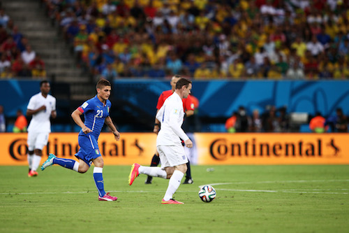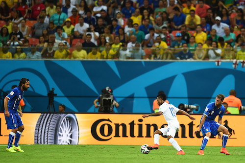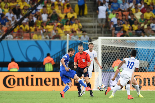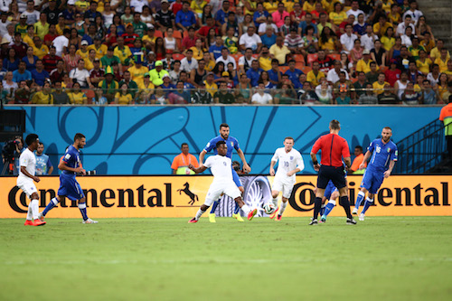 Sono passati nemmeno 4 minuti di gioco quando l’Inghilterra sembra dominare un incontro che, da lì a breve, parlerà soprattutto azzurro. Ma in quei minuti “infuocati” c’è spazio anche per un bolide; quello scagliato dall’inglese Raheem Sterling, che con un tiro fin troppo velenoso ha “spettinato” il nostro Salvatore Sirigu, tra i pali a difendere la porta dell’Italia al posto del capitano infortunato Gigi Buffon. Il tiro, per nostra fortuna, accarezza il legno alla sinistra del portiere e finisce sull’esterno della rete.