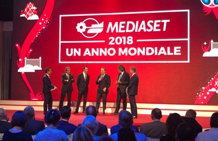 13.12 – Iniziano le domande dei giornalisti. Savino introduce sul palco Paolo Calvani, direttore comunicazione Mediaset che modera le domande, Yves Confalonieri, responsabile contenuti sportivi, Marco Paolini, direttore generale palinsesti e distribuzione, Pierpaolo Cervi, direttore business digital, Stefano Sala, ad Publitalia, e Piersilvio Berlusconi.