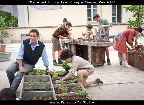 In Non è mai troppo tardi non si racconterà solamente l’Alberto Manzi più noto, ovvero quello che dal ’60 al ’68 entrò nelle case per insegnare agli italiani a leggere, scrivere e contare, ma anche il Manzi meno conosciuto, quello appena ventenne, che nei giorni della ricostruzione fu assunto come insegnante in un carcere minorile di Roma. Lì, di fronte a 90 ragazzi difficili riuscì con grande caparbietà e tra mille difficoltà a fare il suo mestiere e conquistare l’affetto e la stima dei suoi alunni.