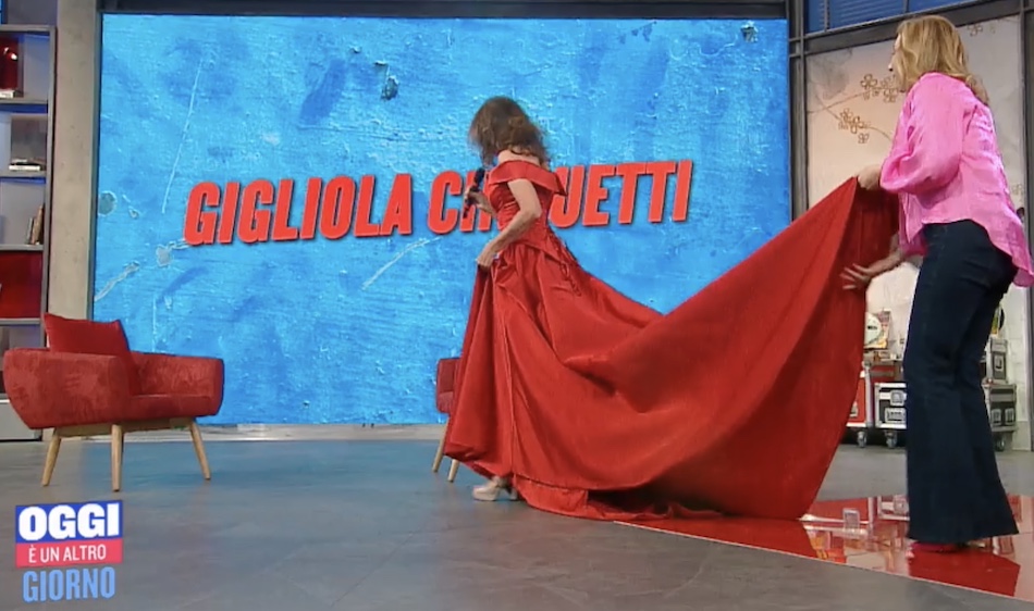 Doveva essere ospite dell’Eurovision Contest 2020 ma la pandemia ha vanificato le sue speranze. Una grande occasione per la quale Gigliola Cinquetti, prima vincitrice per l’Italia dell’Eurofestival, aveva già fatto preparare un sontuoso abito, giocoforza rimesso nell’armadio senza essere mai indossato. Almeno fino ad oggi. La cantante si è presentata nella puntata odierna di Oggi è un Altro Giorno con quel vistoso abito rosso, con tanto di strascico sorretto da Serena Bortone. “Ho sempre sognato di fare la damigella d’onore” il commento di una divertita padrona di casa.