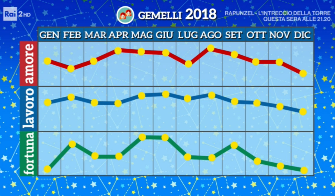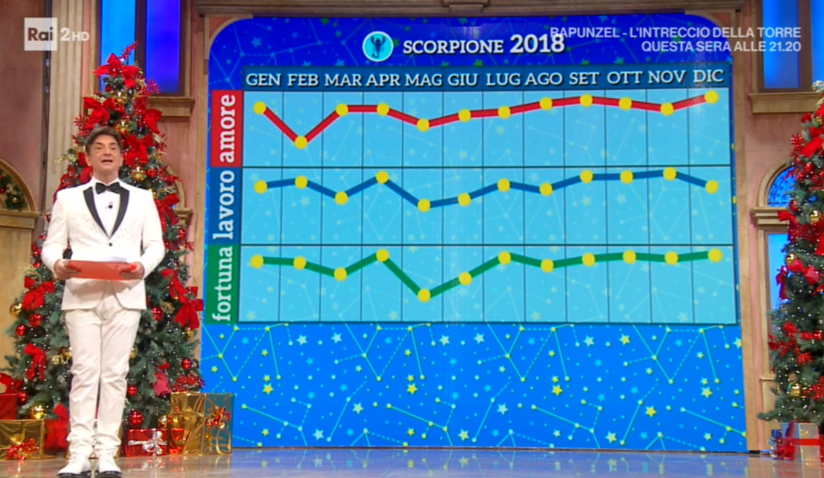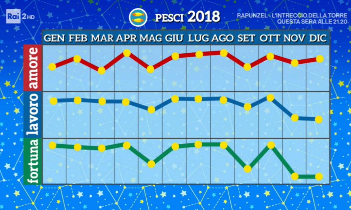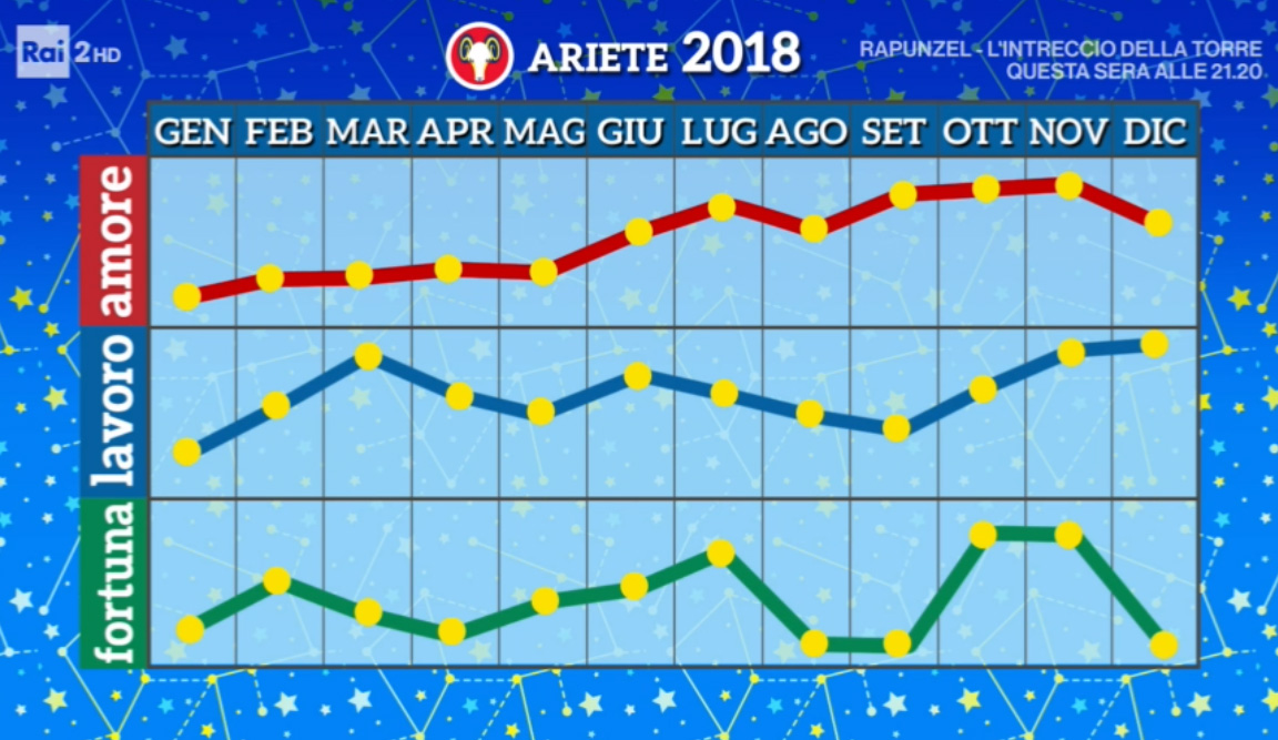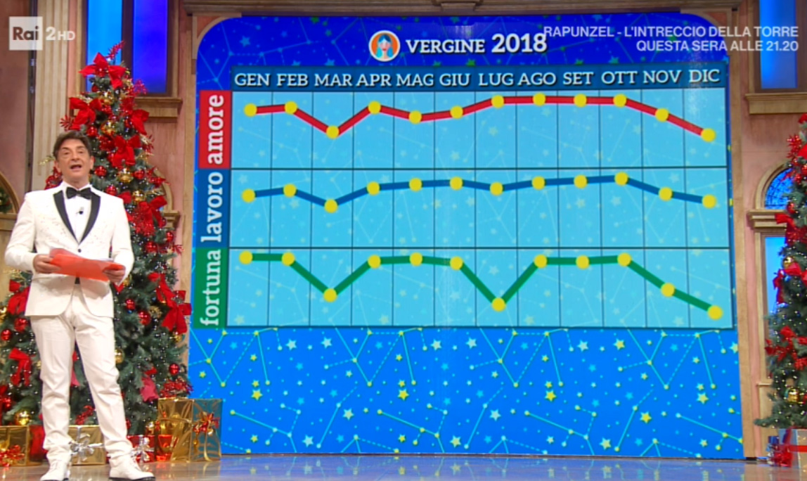 Un anno nuovo non può iniziare senza l’Oroscopo di Paolo Fox. Ecco allora segno per segno tutte le previsioni dettagliate del celebre astrologo per il 2018, così come pronunciate durante la prima puntata dell’anno de I Fatti Vostri. A margine dell’articolo troverete i grafici che indicano mese per mese gli alti e i bassi in amore, lavoro e fortuna dei dodici segni zodiacali.