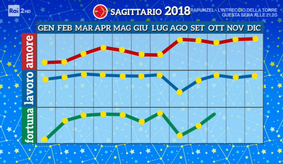 Grande cielo anche per il Sagittario con una fine dell’anno importantissima perché Giove entrerà nel vostro segno zodiacale da novembre, però l’effetto si fa sentire da molto prima. Potrete contare dopo un inizio di anno non eccezionale per i sentimenti, su alcuni mesi di molta forza in particolare tra agosto e dicembre. Se ci tenete a una persona ma soprattutto se non conoscete nessuno, cominciate ad allargare il giro di amicizie da febbraio: i cuori solitari inizieranno l’anno da soli e finiranno l’anno in coppia. C’è grande voglia di fare e l’ottimismo del Sagittario è contagioso, quindi chi c’è attorno a voi vorrà usufruire di questa vostra allegria. Contratti confermati, accordi importanti, via libera a tutte le convocazioni, a tutti gli esami, soprattutto dall’estate in poi. Mese di spicco per il lavoro: luglio, avrete grandi opportunità.