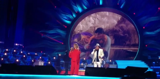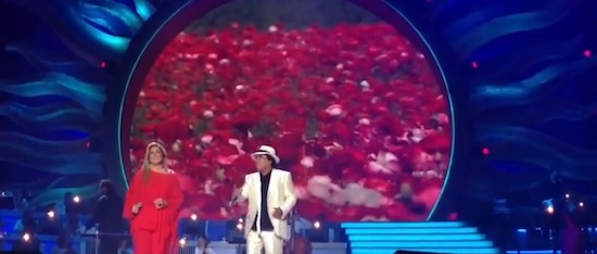 9 a Albano e Romina (qui un video della loro esibizione). La coppia d’oro della musica leggera (e del gossip) anni 80 si è riunita dopo quasi vent’anni rinvigorendo un’attenzione mediatica che in questi ultimi 20 anni non è mai sopita. L’auspicio è che la reunion possa avvenire anche in suolo italico. Sanremese, possibilmente.