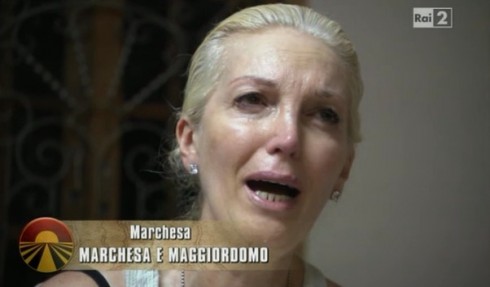 E’ stato allora, quando le battute iniziavano ad essere ridondanti e la stanchezza iniziava a farsi sentire, che la montagna della Marchesa ha iniziato, pian piano, a sgretolarsi, arrendendoci a non aspettarci da lei niente di più se non quei tratti caratteristici sottolineati nelle prime puntate. Se però dovessimo individuare le note dolenti della sua avventura queste porterebbero un solo nome e avrebbero un solo volto: quello di Gregory. Il maggiordomo, che all’inizio faceva quasi tenerezza per via della sua timidezza e della mancata dimestichezza con l’italiano, si è dimostrato, in questa settima puntata, un servitore sleale.Ecco perché, al momento della separazione dalle coppie originarie, il buon Gregory sembrava euforico come un evaso da Alcatraz, quando era chiaro che ad Alcatraz non c’era mai stato. Siamo convinti che spegnere la radio sintonizzata su Marchesa Rtl non doveva essere affatto facile, ma da qui a esultare e a ribadire, davanti alle telecamere, la sua rinnovata libertà sembra davvero eccessivo. Mai una sgridata, mai uno schiaffetto in stile Corinne Clery, mai uno sgarro: possibile che la Marchesa lo inibisse fino a questo punto? Eppure le sue prime parole in sette puntate le abbiamo sentite proprio ieri sera, lontano da lei e affianco di Giovanni Teodori, per poi ammutolirsi di nuovo al suo cospetto. Che stesse recitando una parte per attirare la solidarietà delle coppie rivali? D’altronde, noi rispondiamo “Evviva la Marchesa d’Aragona, che è bella, buona e generosa”.
