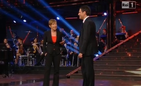 E’ andata in onda questa sera su Rai 1 la 54° edizione del Premio Regia Televisiva, il vecchio Oscar della Tv nato nel lontano 1961 da un’idea di Daniele Piombi. Una serata di musica e spettacolo che ha ripercorso la passata stagione televisiva offrendo al pubblico da casa le canzoni di Gianni Morandi, le migliori imitazioni di Tale e Quale Show, la dissacrante ironia di Ezio Greggio riguardo l’ultimo “geriatrico” Festival di Sanremo e vari altri sketch. Tra cui quello che ha visto protagonista Paolo Bonolis, non presente in studio ma in collegamento da Londra, e il momento selfie condiviso da Ilary Blasi con Daniele Piombi e il conduttore della serata Fabrizio Frizzi. Che non ha perso l’occasione per esibirsi dal vivo con Piero Pelù, da lui straordinariamente imitato proprio a Tale e Quale Show.
