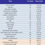 Medaglia d’oro al programma di Federica Sciarelli, che tre anni fa riusciva a coprire i propri costi per il 152% grazie alla pubblicità. Seguiva, in classifica, Linea Blu (133% di copertura costi), e i Wind Music Awards, che con soli 8 break coprivano le proprie spese per il 129%. Bene anche il 66esimo Festival di Sanremo (copertura 106%).