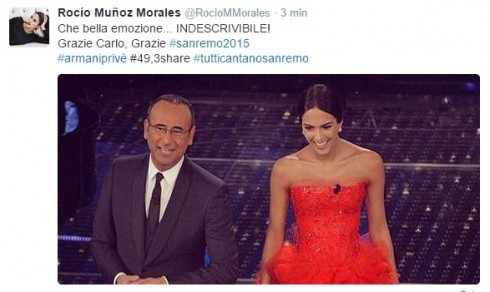 “Che bella emozione… INDESCRIVIBILE! Grazie Carlo, Grazie #sanremo2015 #armaniprivè #49,3share #tutticantanosanremo”