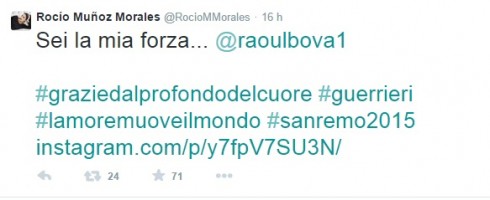 “Sei la mia forza… @raoulbova1 #graziedalprofondodelcuore #guerrieri #lamoremuoveilmondo #sanremo2015“