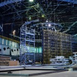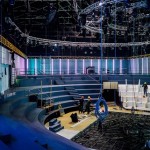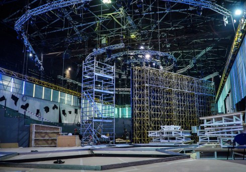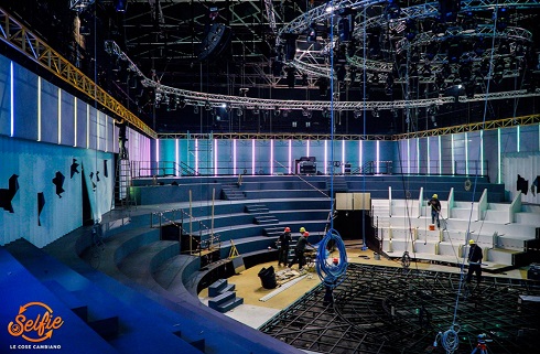 E’ lo stesso programma, attraverso i suoi neonati profili social, a mostrare i lavori in corso. Blu e azzurro sono i colori dominanti; forma circolare e postazione del pubblico a ridosso della scena principale come fossimo in un’arena.