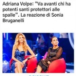 Adriana Volpe punge, Sonia Bruganelli si indispettisce. Dopo la stoccata dell’ex conduttrice di Rai 2 riguardo alla sua mancata conferma come opinionista al Grande Fratello Vip, affermando di non avere alle spalle santi protettori come invece avrebbero altri/e, la moglie di Paolo Bonolis c’ha tenuto a dire la sua via social.