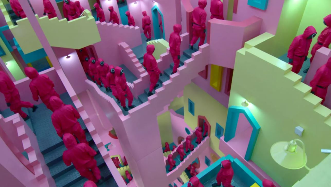 I luoghi in cui è ambientato Squid Game non esistono nella realtà. Ma prendono spunto da essa. L’intreccio di scale e gli alienanti ambienti dalle fattezze infantili che fanno da scenografia alla serie richiamano alcune architetture davvero realizzate. Gli appassionati della serie ritengono che una delle location più inquietanti utilizzate dai concorrenti, ovvero la scala labirintica dai toni pastello, ricordi il complesso della “Muralla Roja“, disegnato dall’architetto spagnolo Ricardo Bofill. Evidenti anche i richiami al quadro di Maurits Cornelis Escher chiamato La relatività, nel quale le scale sembrano non avere senso e andare contro la logica. I luoghi di Squid Game sono stati costruiti sul set nella città di Daejeon, la quinta città più grande della Corea del Sud, nota per il suo progresso tecnologico.