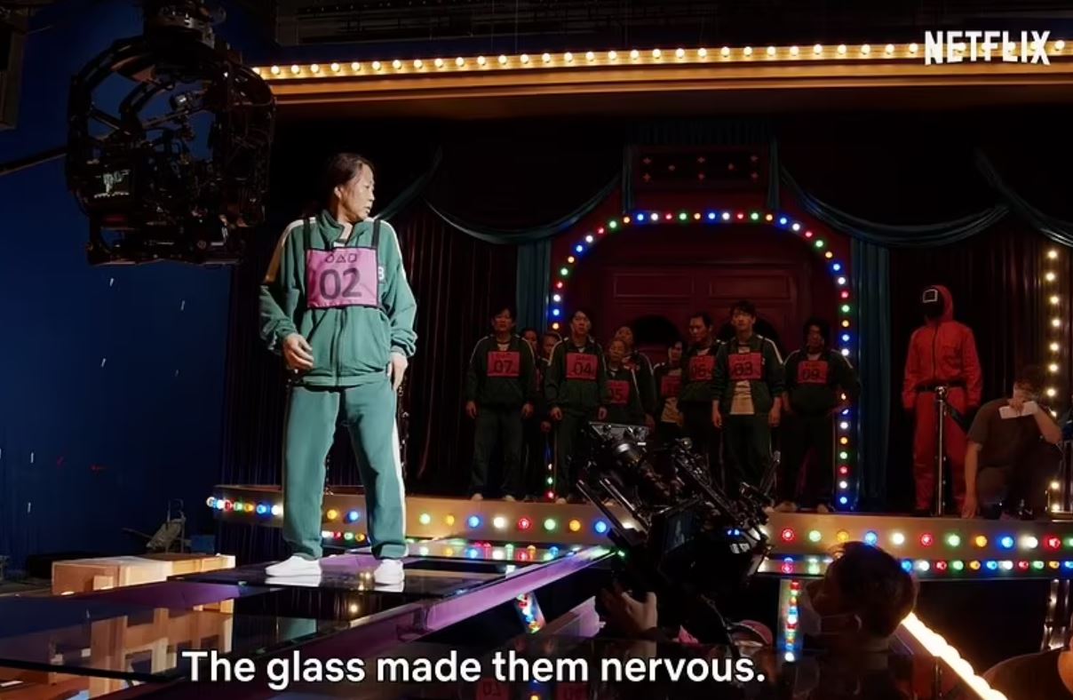 Il ponte di vetro che caratterizza uno dei perfidi giochi di Squid Game è stato realizzato in modo che anche gli stessi attori, sul set, percepissero la tensione della sfida interpretata. Il regista ha dunque voluto che gli attori provassero il rischio della caduta; ovviamente, sotto i loro piedi non c’era uno strapiombo ma solo un dislivello di circa un metro e mezzo.