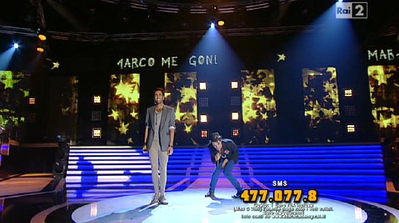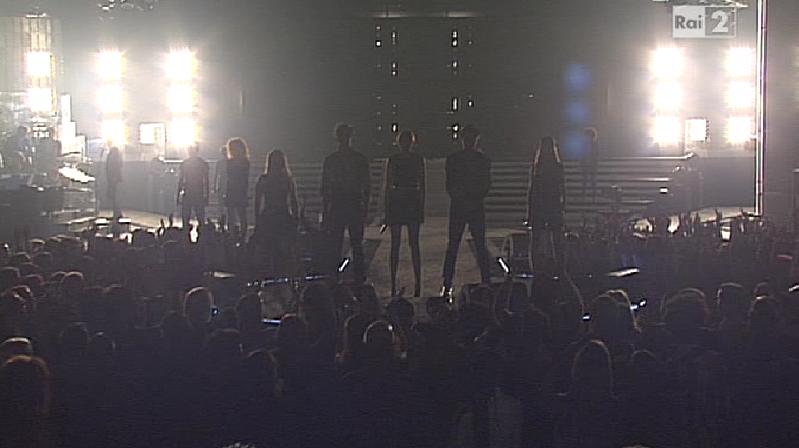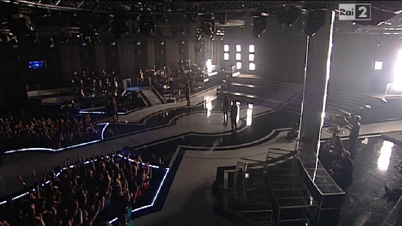 Ore 23.00: Facchinetti la prende alla larga, molto alla larga, quando deve presentare Marco Mengoni. Il Re Matto di XFactor si esibisce accompagnato da Alessandro, Julia e Federica. Mengoni loda la Vanoni e la Cuccarini loda Mengoni. E tutti se la cantano e se la suonano, mica per niente lo chiama talent show.