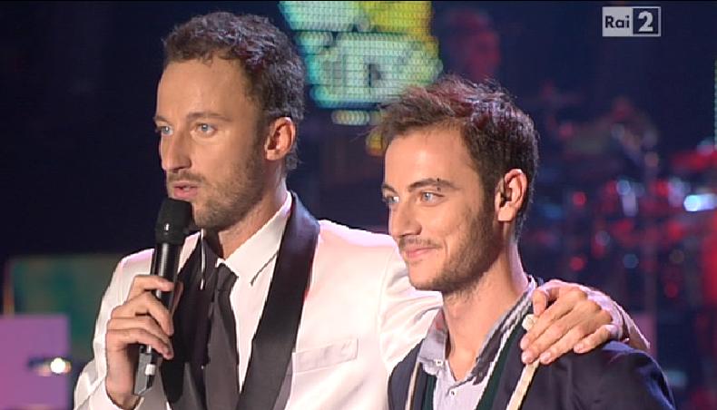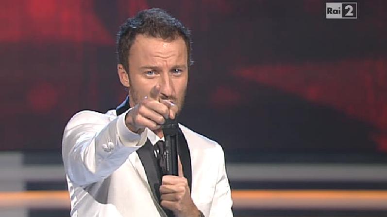Ore 00.10: ah, Max Pezzali era ancora seduto tra i concorrenti. Facciamolo esibire, non si sa mai: questa volta da solista però.
