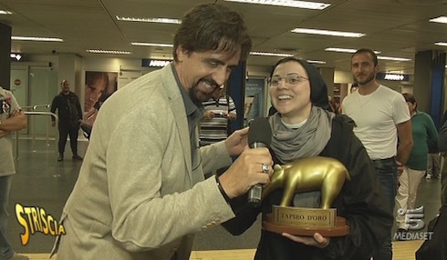 Questa sera nel corso del tradizionale appuntamento con il tg satirico, condotto da Michelle Hunziker e Ezio Greggio, assisteremo alla consegna del temuto premio. La religiosa, intercettata da Valerio Staffelli all’aeroporto di Linate, ha detto: