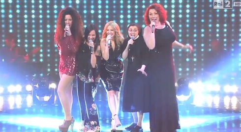 Suor Cristina, invece, come prevedibile, è stata “graziata” dal pubblico televotante che avrà apprezzato la sua esibizione sulle note di What a Feeling, colonna sonora di Flashdance (qui i commenti dei giudici). La giovane venticinquenne ha poi cantato insieme a Kylie Minogue con altre tre concorrenti (Luna Palumbo, Gianna Chillà e Daria Biancardi). Vi proponiamo il video.