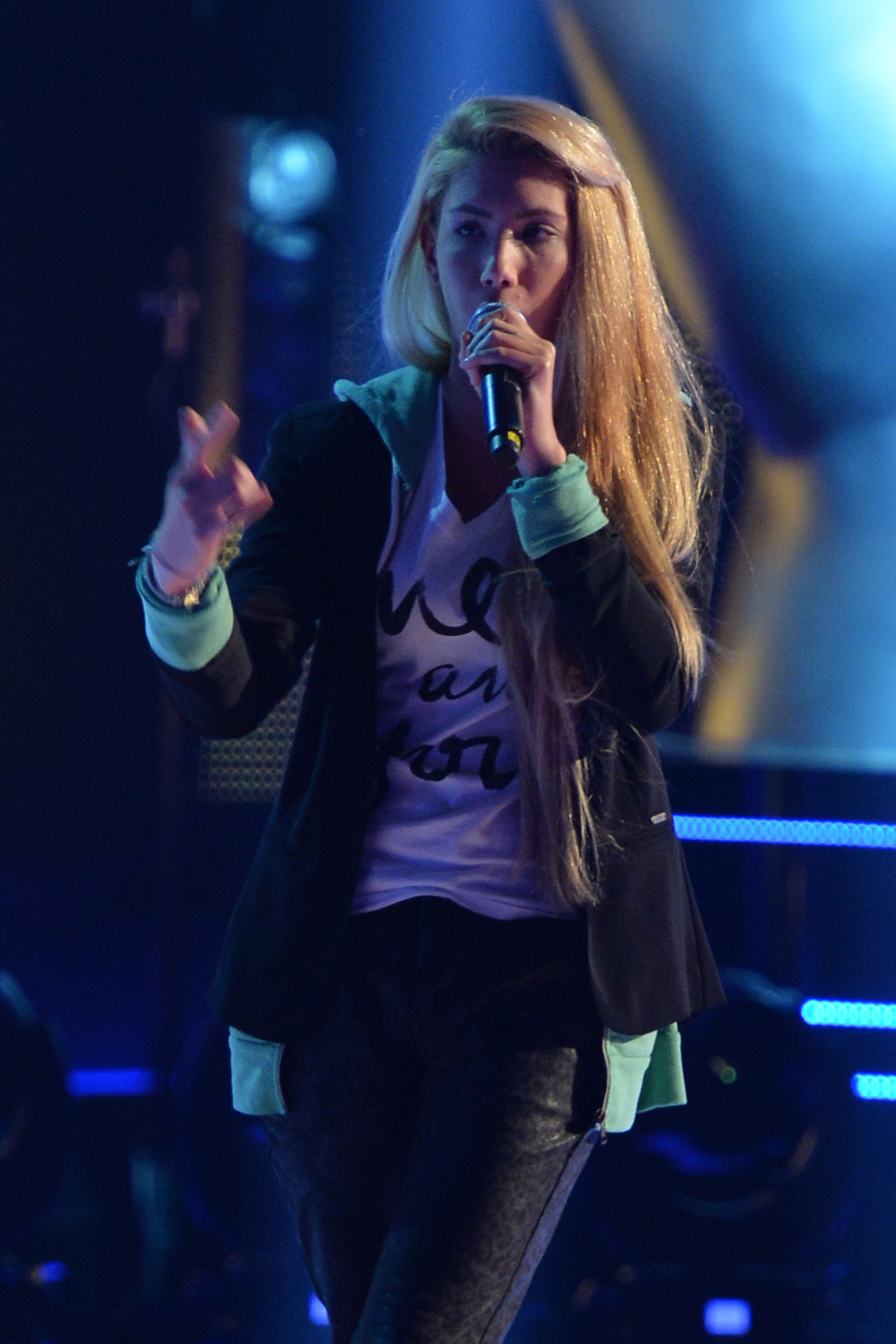 23.05 – Prossimo concorrente è… sotto al tendone. E’ Giada Borrelli di 16 anni, voce potentissima ma… nessun coach si è girato.