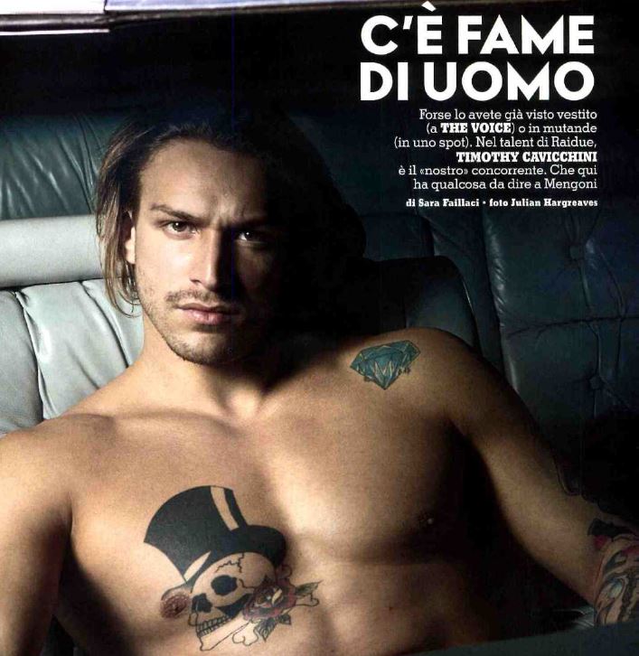Il cantante, tutto rock e muscoli in bella vista – come si può notare dalla fotogallery – ha rilasciato un’intervista a Vanity Fair in cui spiega di essere stato cercato dalla produzione per far parte del programma (non solo casting dunque a The Voice) e di avere buone probabilità di vittoria, considerato che “di donne brave ce ne sono già tante, il mondo musicale ha fame di uomo. Anche perché quelli emersi di recente – penso a Mengoni – non hanno la classica voce maschile“. Timothy ha tutte le carte in regola, insomma, per sfondare e per battere i rivali a colpi di televoto.