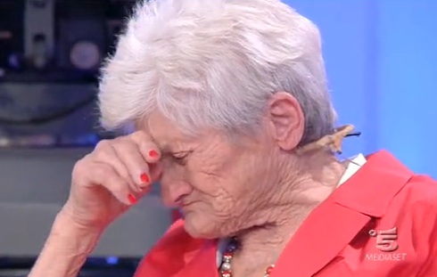 Ci vuole tutto il tatto televisivo della conduttrice per scacciare via i cattivi pensieri dalla testa della nonnina. Maria De Filippi s’ impegna a non lasciare più la sua fidata amica al buio, le sue parole sono una promessa che equivale a un vitalizio da opinionista: