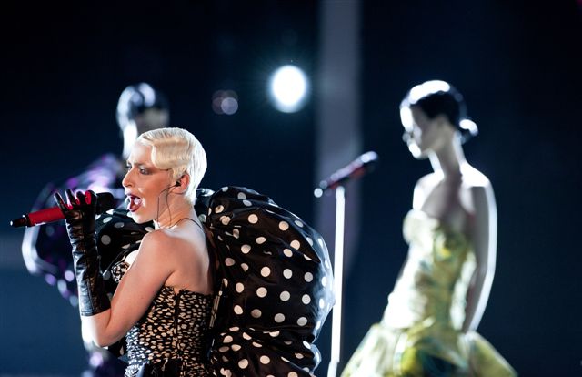 È il turno di Romina che canta Rio dei Duran Duran, anche se avrebbe voluto cantare My way. E’ evidente ci sia qualcosa che non va. E non è il cerchione che Tommassini le ha messo intorno al braccio destro. E nemmeno la macchia di rossetto sul naso che in tema di mostriamo l’allegria probabilmente avrebbe donato di più alla sorella dei Freres Chaos. Salgono sul palco le Donatella. Non è che aspettiamo l’uscita del loro EP come le vacanze di Natale, però bisogna oggettivamente riconoscere che potrebbero essere divertenti. Yendry canta Don’t Speak dei No Doubt. Buona esibizione, il cui valore aggiunto è che a muoversi questa volta non è la cantante ma solo la sedia girevole su cui è seduta.