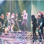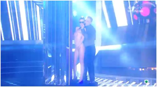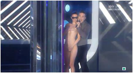 Il cantante, prima, ha dato di fatto il via ufficiale alla premiere di X Factor 6, annunciando lui stesso, con un “divertente” italiano, l’entrata in studio del conduttore Alessandro Cattelan e dei quattro giurati. In seguito è tornato sul palco con una coreografia molto particolare in cui spiccava la presenza di modelle seminude con indosso soltanto slip rigorosamente color carne e una mano a coprire i seni (potete vederle nella nostra fotogallery).